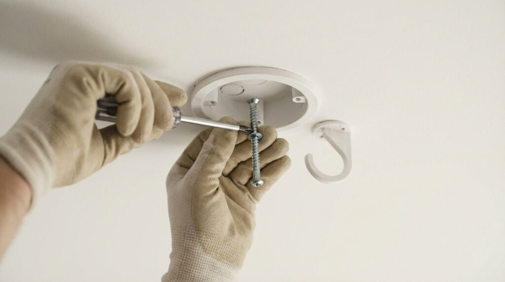 Vous avez sans doute déjà pesté devant ce petit bout de plastique fragile en vous demandant comment remplacer crochet dcl fixation vis pour sécuriser votre nouveau lustre lourd. Au lieu de tenter un bricolage hasardeux sur le boîtier existant, je vous guide pas à pas vers la création d’un point d’ancrage fiable directement dans le matériau de votre plafond. Attrapez votre caisse à outils, car cette technique pragmatique vous garantit une installation à la fois esthétique et parfaitement solide pour tous vos projets d’éclairage. Pourquoi et quand abandonner le crochet DCL ? Préparation du chantier : sécurité et matériel indispensable La méthode correcte : créer un ancrage solide à côté du boîtier DCL Finitions et comparatif pour un résultat impeccable Pourquoi et quand abandonner le crochet DCL ? Les limites bien réelles du crochet DCL standard Le système DCL part d’une bonne intention, mais son crochet en plastique reste son talon d’Achille. Même si la norme annonce une résistance théorique de 25 kg, je ne confierais jamais mon lustre préféré à ce petit bout de plastique, surtout s’il n’est pas arrimé à la charpente. Ensuite, il y a le souci du look. Ce crochet impose une centralité rigide et manque souvent de discrétion. Pour installer une suspension moderne épurée, ce n’est franchement pas l’idéal. Bref, si vous cherchez la sécurité absolue et une liberté totale, il faut oublier le standard. L’erreur de débutant à ne surtout pas commettre Je vais être très clair : ne jamais visser directement dans le boîtier DCL en plastique. C’est tentant de se dire que ça va tenir, mais c’est le piège classique qui vous coûtera cher. Le plastique du boîtier n’a aucune tenue mécanique pour supporter une vis sous tension. Il va inévitablement se fissurer ou se déformer. Votre luminaire finira par pendouiller, osciller dangereusement, ou pire, s’écraser au sol. C’est un risque inutile pour votre sécurité. Les cas où une fixation par vis devient la seule option Alors, quand faut-il sortir la perceuse ? C’est indispensable pour les luminaires lourds, comme les lustres en verre ou métal, qui dépassent la capacité de confiance du crochet plastique. C’est aussi la seule méthode viable pour décentrer un luminaire. Si vous voulez remplacer crochet dcl fixation vis pour aligner votre éclairage pile au-dessus de la table à manger, la fixation mécanique déportée vous offre cette liberté que le DCL vous refuse. Préparation du chantier : sécurité et matériel indispensable La sécurité d’abord : on coupe le courant ! Écoutez-moi bien, on ne rigole pas avec ça. C’est l’étape non négociable. Avant de vouloir remplacer crochet dcl fixation vis, on coupe l’alimentation électrique au tableau général. Repérez le disjoncteur de l’éclairage et baissez-le. Ensuite, utilisez un vérificateur d’absence de tension (VAT) ou un multimètre pour confirmer qu’il n’y a plus de courant dans les fils du DCL. Ne vous fiez jamais à l’interrupteur seul. L’inventaire du matériel nécessaire Pour bosser efficacement, il faut tout avoir sous la main. Ça évite les allers-retours et les frustrations. Rien de pire que de réaliser qu’il manque un outil une fois là-haut. Voici l’arsenal requis pour ne pas rester bloqué au milieu du chantier : Un escabeau stable Un jeu de tournevis d’électricien (isolés) Une perceuse-visseuse Des mèches adaptées au plafond (béton, bois, placo) Un crayon de papier Un niveau à bulle Une pince à dénuder Des chevilles de fixation robustes (Molly pour le placo, chevilles à expansion pour le béton…) L’équipement de protection : lunettes, gants et un bon tablier. Analyser son plafond : l’étape trop souvent oubliée La solidité de la fixation dépend entièrement du support. Il faut donc savoir dans quoi on va percer. Tapez sur le plafond : un son creux indique du placo (plaque de plâtre), un son plein du béton ou une poutre. En cas de doute, un petit trou de test avec une fine mèche confirmera la nature du support. La méthode correcte : créer un ancrage solide à côté du boîtier DCL Repérer le point d’ancrage idéal Pour remplacer crochet dcl fixation vis sans tout arracher, il faut trouver un support structurel solide juste à côté du boîtier. Oubliez le placo vide ; visez une poutre en bois ou un rail métallique si vous êtes sous un faux-plafond. Dégainez votre détecteur de montants pour localiser ces renforts invisibles. Si votre plafond est en béton plein, bonne nouvelle, n’importe quel point fera l’affaire. Marquez précisément l’emplacement des trous de perçage au crayon, en vous servant directement du support du luminaire comme gabarit. Le pas-à-pas pour percer et cheviller comme un pro Attrapez la mèche correspondant exactement au diamètre de la cheville choisie. Percez bien droit et à la profondeur requise. Une petite astuce de chantier : collez un bout de ruban adhésif sur la mèche pour visualiser la limite de profondeur à ne pas dépasser. C’est la cheville qui garantit la tenue mécanique de la fixation, alors ne la négligez pas. Enfoncez la cheville dans le trou préparé. Pour une cheville Molly, utilisez la pince spéciale pour l’expanser correctement. Pour une cheville béton, enfoncez-la au marteau jusqu’à ce qu’elle soit à fleur. Installer la fixation et raccorder le luminaire Vissez maintenant le support de fixation du luminaire dans la ou les chevilles fraîchement posées. Serrez fermement, mais sans forcer comme une brute pour ne pas abîmer la tête de vis. Le support doit être parfaitement stable et plaqué au plafond. On passe à l’électricité, c’est là que le boîtier DCL reprend son rôle. Connectez les fils du luminaire à la fiche DCL (phase, neutre, terre), puis clipsez simplement la fiche dans la prise du boîtier. C’est simple, normé et totalement sécurisé. Finition
