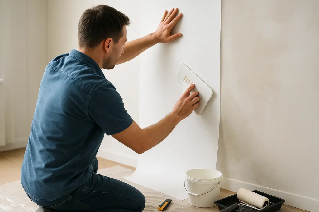 2. Réparer les bosses et trous : La toile cache les micro-fissures mais pas les gros défauts. Utilisez de l’enduit à prise rapide pour les trous > 2 mm. Laissez sécher 24h et poncez légèrement.